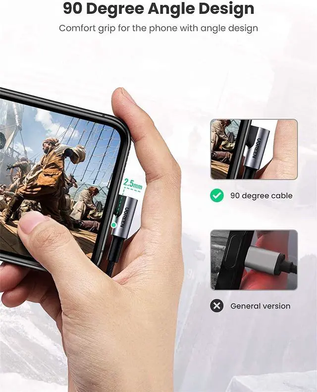 Sound Quality: Well manufactured, UGREEN Right Angled USB-C to 3.5 mm Earphone Jack Adapter delivers astonishing audio experience. The professional USB C to Aux Stereo Cable combines enamelled copper conductors, 3-layer shieldings(copper, TPE jacket, nylon braid jacket) with reinforced aluminium shells. The solid shieldings protect the audio against RF, EM, and ground loop interference during transmission and provide noise-free and ultra-clear sound quality.