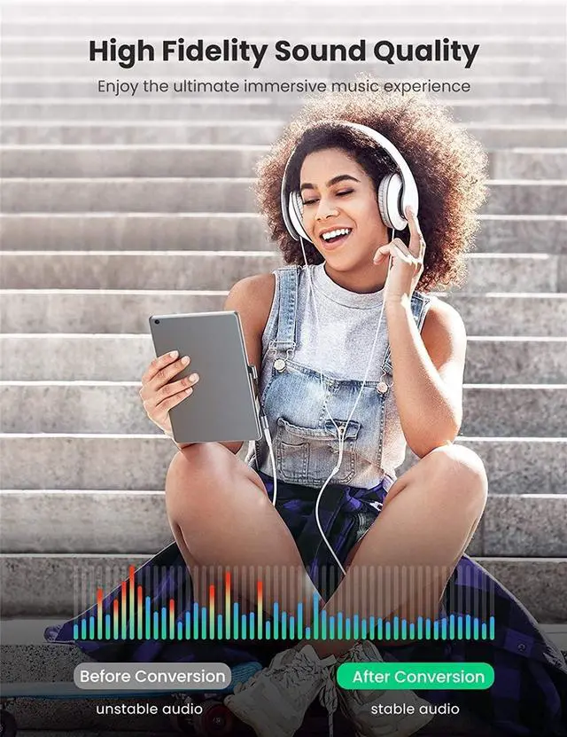 Jack Adapter: UGREEN USB Type C to Aux Female Adapter provides the easiest way to connect USB-C phones or tablets(without 3.5 mm audio jack) to the car stereo, home Hi-Fi, speaker, headphones, earphones, headsets or other devices of 3.5 mm port, letting you experience more remarkable sound quality on high-end devices. The USB C Headphone Jack Adapter also supports microphone and remote control functions like Volume+/-, Next or