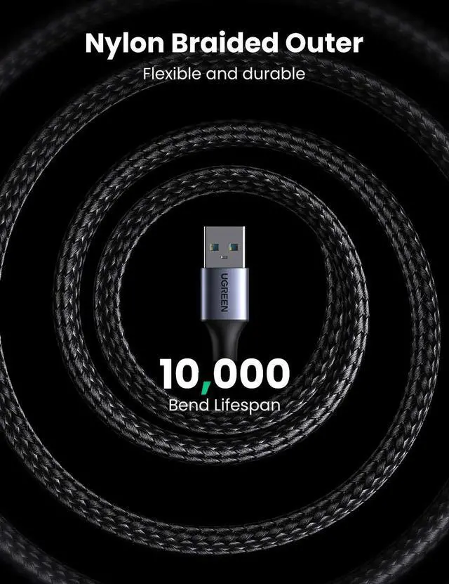 Durable Nylon Braided: Tangle-free nylon braided material and wear-resistant aluminum shell make this Type A male to male cable bend over 10000 bending, the combination of nickel-plated connectors and foil & braid shielding provides stable and fast data transferring.