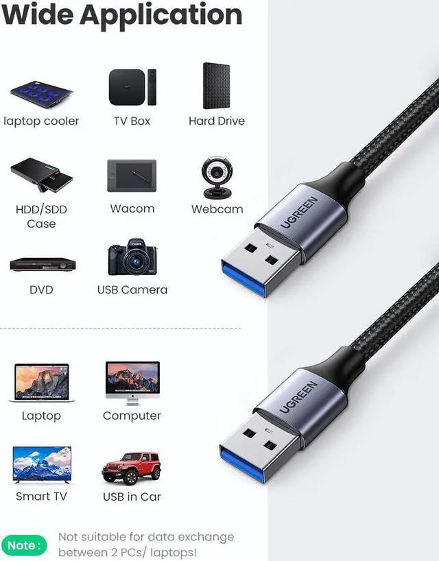 Wide Compatibility: The USB A to USB A cable is compatible with Laptop, Laptop Cooling Pad, Smart TV, USB in car, DVD player, USB 3.0 hub, Monitor, Camera, Blue-ray Drive, Set Top Box, 2.5 -Inch External Hard Drive Enclosure with Type A port, and most USB 3.0 external hard drives with Type A port.