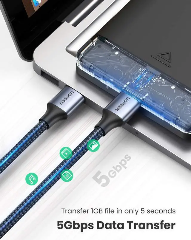 A Male Cable: UGREEN USB 3.0 cable connects a USB peripheral with USB 3.0 type A port to a computer for speedy file transfer. It acts as an extension for your USB 3.0 connection.