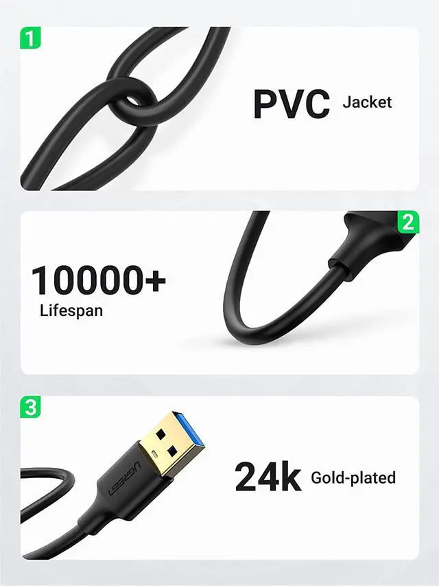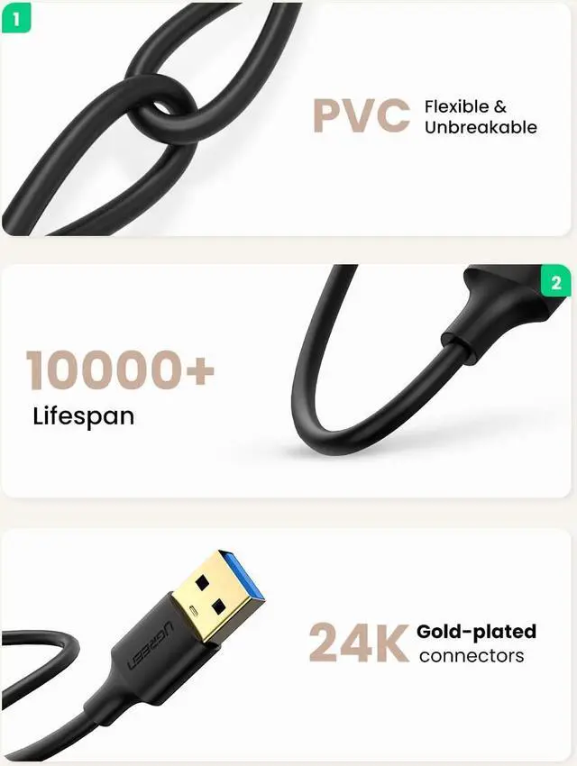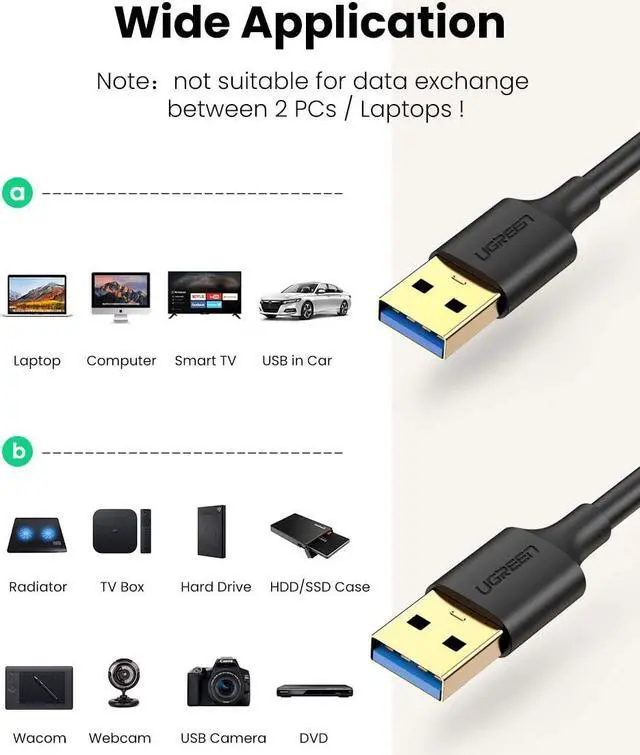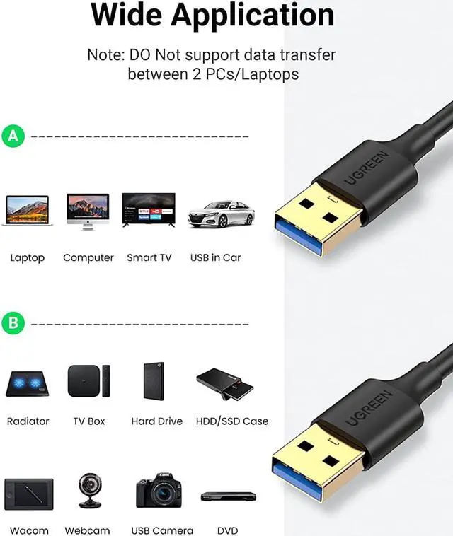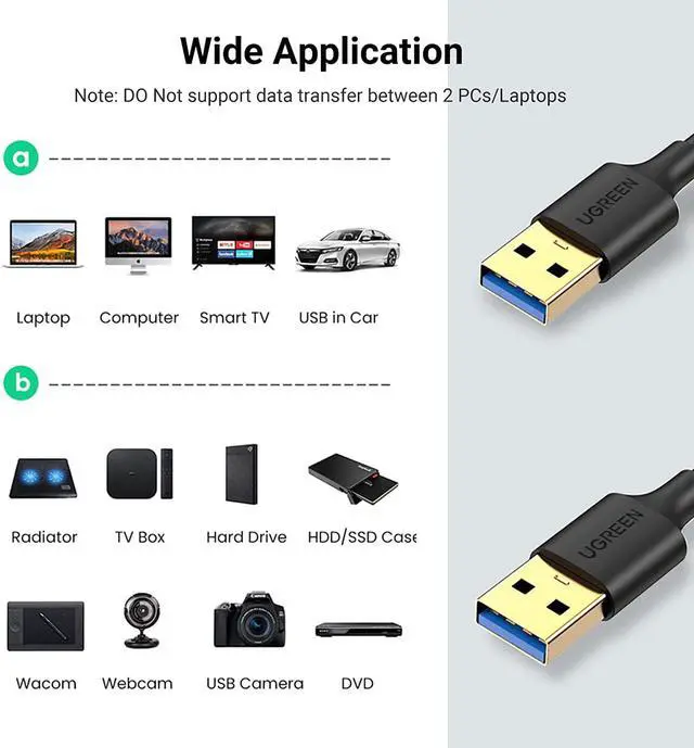Durable & Reliable: With molded strain relief connectors for durability and grip treads for easy plugging and unplugging; The combination of gold-plated connectors, bare copper conductors, and foil & braid shielding provides superior usb 3.0 cable performance, error-free data transmission. It cannot be used for charging your phone or tablets.
