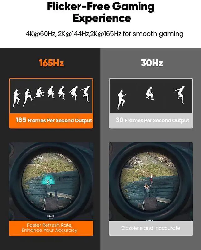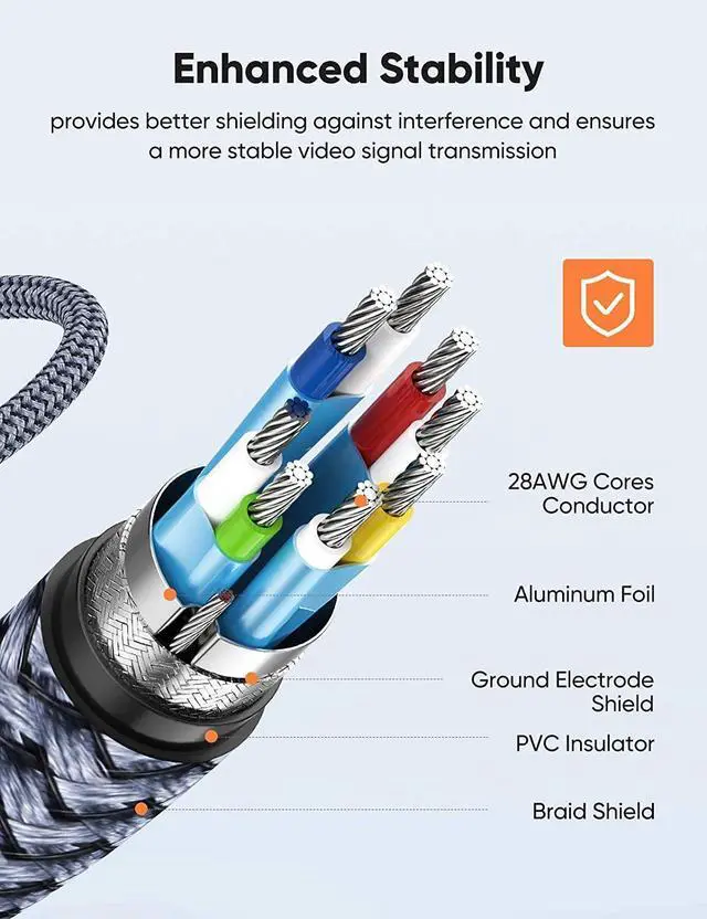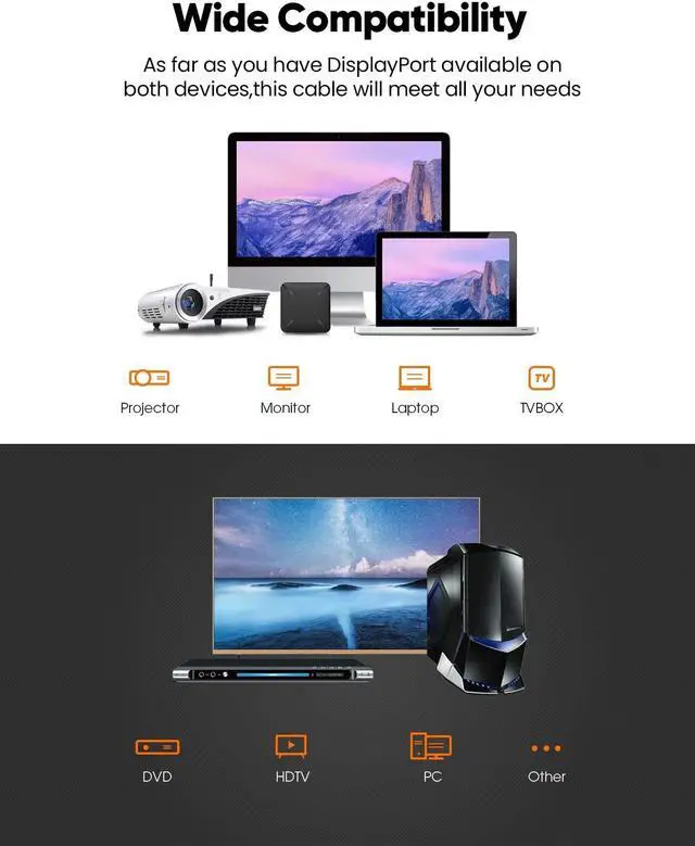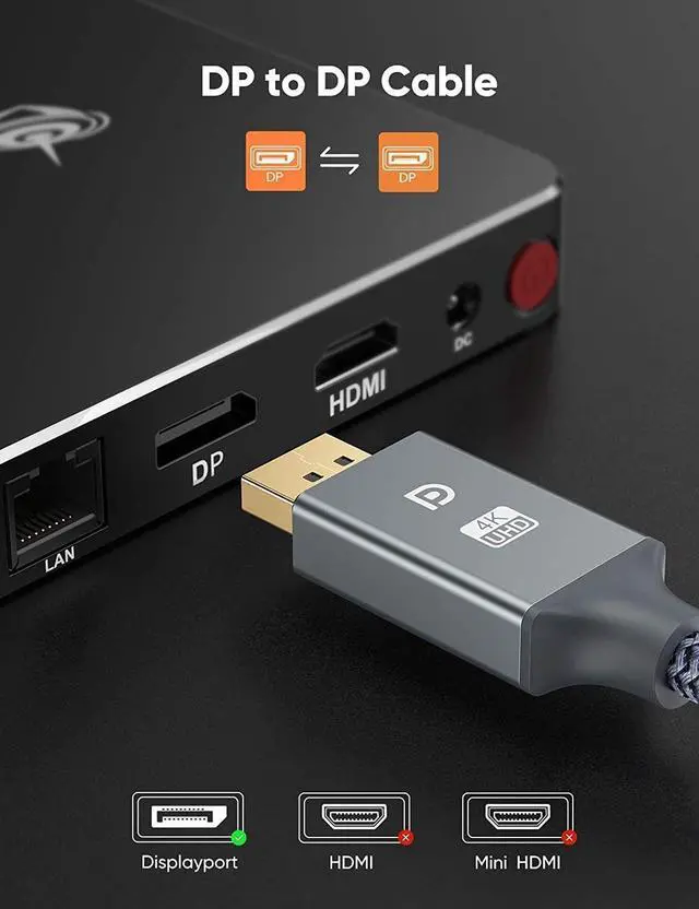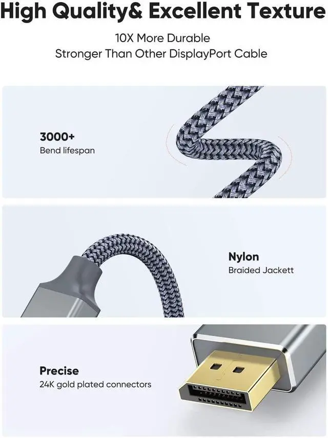 ?Ultra-high Refresh Rate DispalyPort Cable?Snowkids displayport cable 1.2 supports 3D, 4K 60Hz, 2K 165Hz, 2K 144Hz, and it also backwards compatible with 1080P 144Hz or lower refresh rate. Fast transmission speed reduces flicker and shows every single frame when you play a game. ?Premium Built, Sturdy Quality?24k gold-plated conductors won’t tarnish or decrease conductivity over time, Slim aluminium alloy shell help this display port cable resist almost any crash damage. Tinned copper conductors, foil and nylon braid shielding combine together to provide both superior displayport cable performance and reliable connectivity.