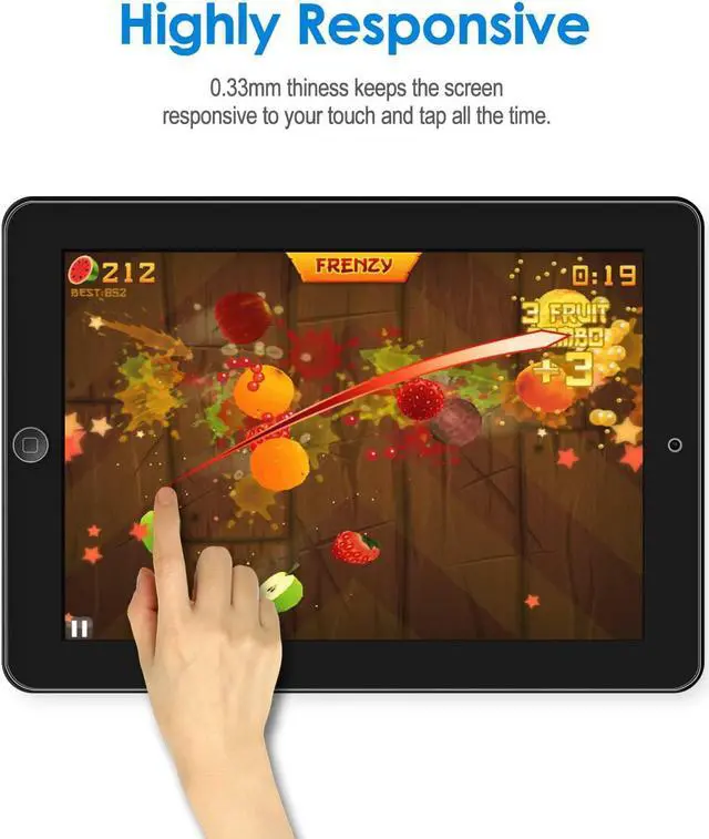 Fit iPad models: A1395/A1396/A1397/A1416/A1430/A1403/A1458/A1459/A1460 Made with high quality 0.33 mm thick premium tempered glass with rounded edges