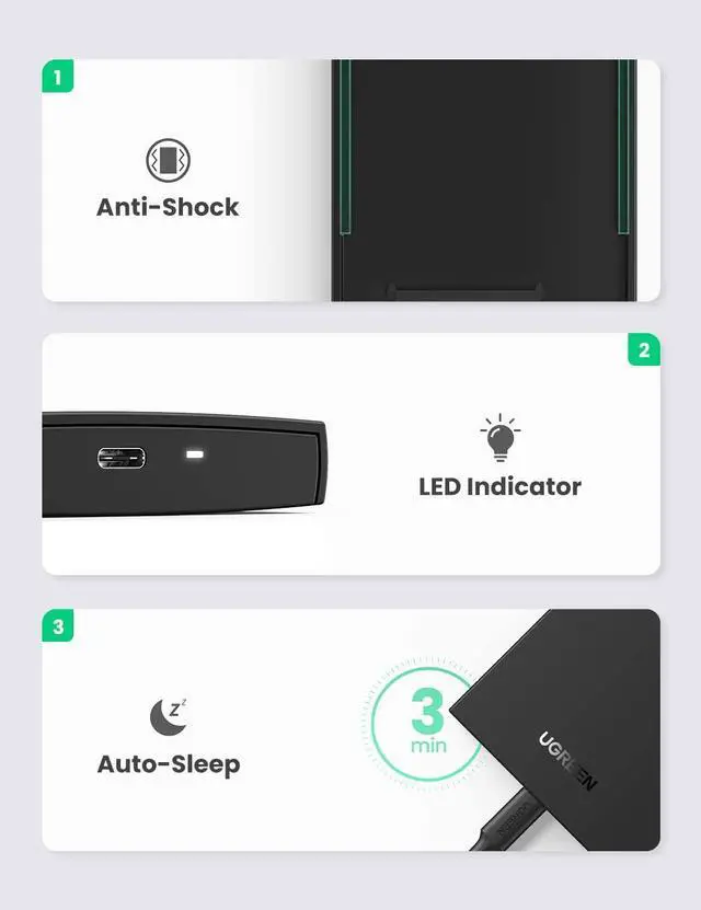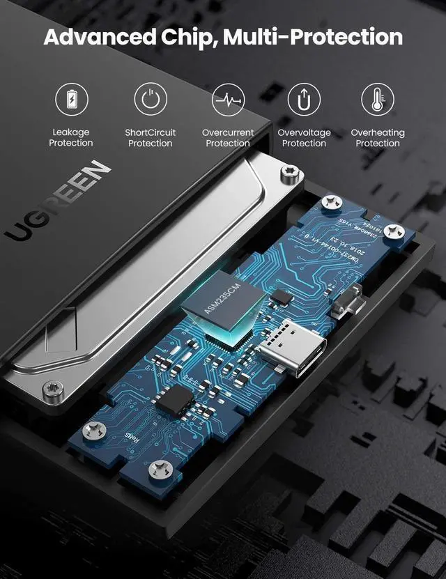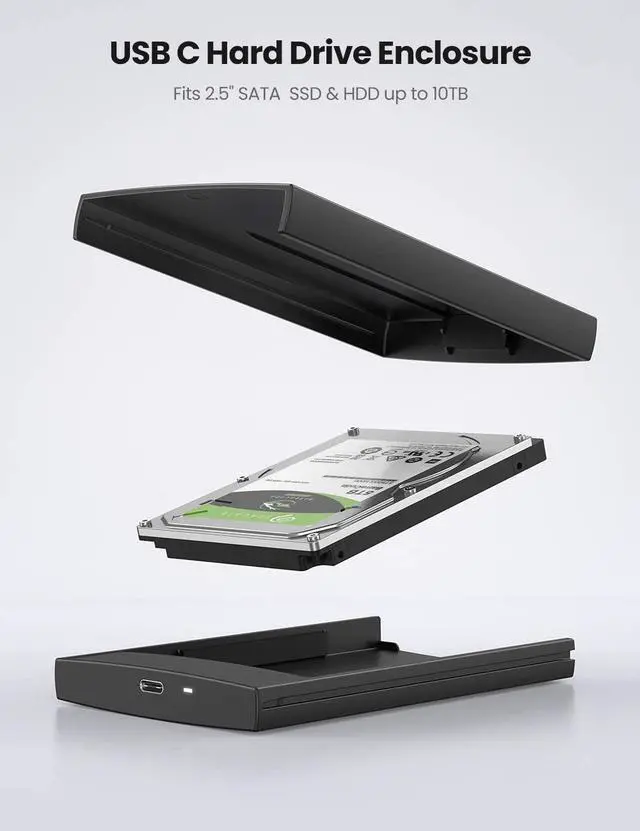 Hard Drive Enclosure: UGREEN 2.5" Hard Drive Enclosure can easily connect a 2.5" SATA SSD or HDD with your computer to expand storage, upgrade system, back up files, retrieve and recover data, and transfer data. It protects the external hard drive from outside scratches and makes the hard drive portable for data store. 6Gbps Fast