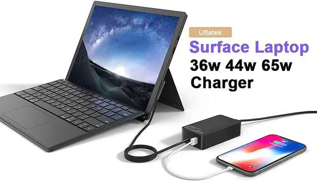 Output: 15V-4A 65W; USB port 5V-1A 5W. It works with Microsoft 15V- 2.58A 44W, 12V- 2.58A 36W and 15V- 1.6A 24W. With additional USB 2.0 charging port of 5V / 1A. The USB port allows you to charge another device such as your phone at the same time. You can use charger with 7.2 ft Cord on different occasions, for travelling, at home, on the car, at the office, etc. ?Safety & Protective?- Built-in IC chip technology provides overload / short circuit protection / overload protection / heat protection. We test each charger to ensure a tight, strong magnetic connection. We have also sourced a very high-quality material to ensure our power adapter ends will never come loose and its wires will stay intact and remain safe from fraying, even after numerous bends and laptop charging sessions! ?Service & Certificate?-- Our company is specialized in the research, development and production of Laptop Power Supply. All of our products are put through rigorous quality control measures to ensure safe and reliable operation. Power adapters is in compliance with top industry standards and include numerous safety mechanisms that protect your devices.