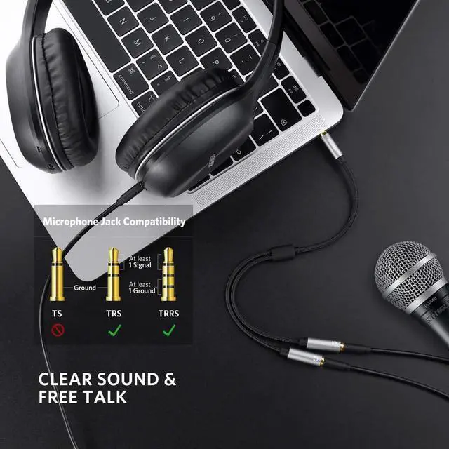 Two: 3.5 mm headset splitter cable enables you to easily connect your headsets with separate audio&mic plugs to your new laptop, smartphone, game controller with 3.5 mm TRRS jack, such as PS4, Xbox One. Extend a mic port to your smartphone/ 3.5 mm single hole laptop for voice chat, record vlog, live video sharing.