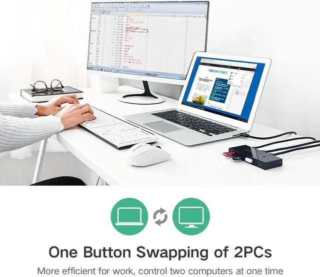 The USB sharing switch allows you combine with a USB hub to share multiple devices e. g. printers, scanners, etc. Bus powered with no external power supply required. Button and LED design, you can easily switches between systems via push buttons with LED indicating the active computer.