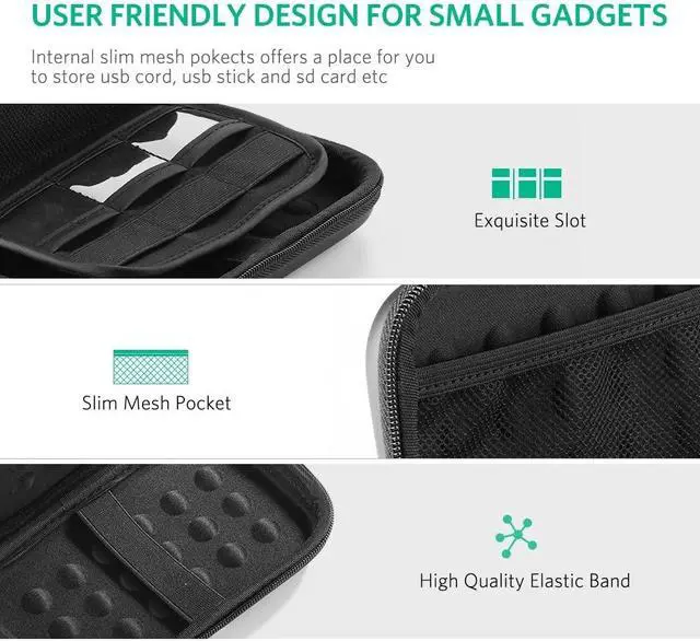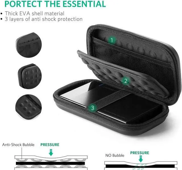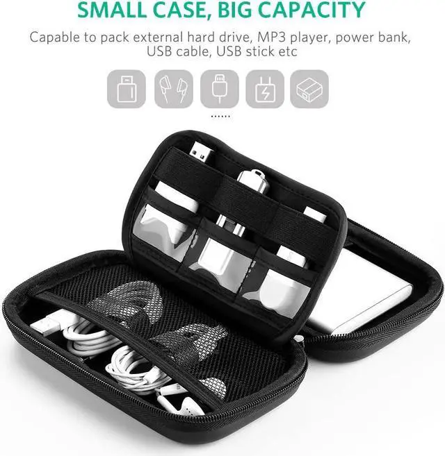 UGREEN Hard Drive Case is designed to protect and organize your electronics such as 2.5" hard drives, usb cables, power bank, earphones and more.