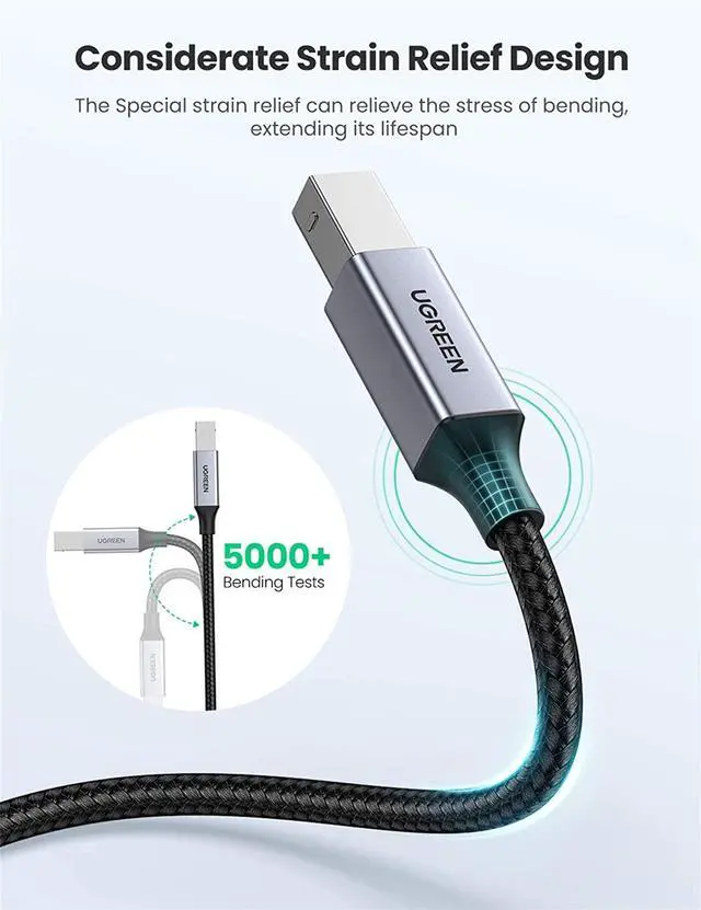 Flexible: The USB C printer cable is nylon braided and comes with metal casing, which can withstand wear and tear, flexible and durable High