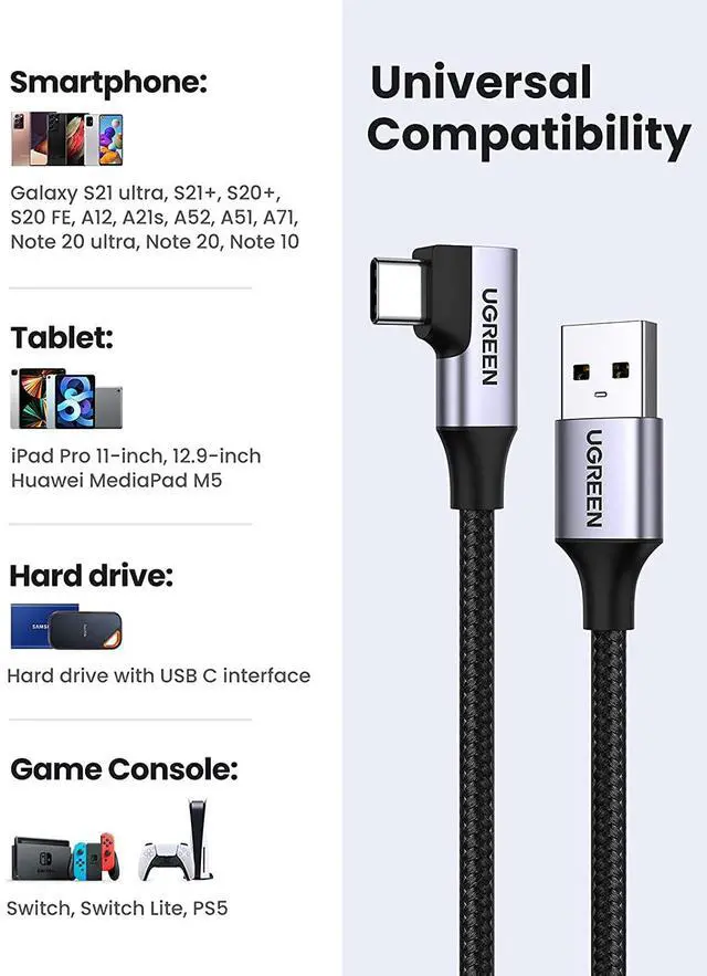 Universal Compatiblity: The Type C cable is compatible with Samsung Galaxy S21 Ultra, S20, S10 Plus, Note 9, S9, S9 Plus, S8, S8 Plus, Note 8, A51 A71, A5 2017, A8 2018, iPad Pro, PS5 Controller, Google Pixel 5 4A Google Pixel 3 XL, 2, 2 XL, Xiaomi Mi A2, A1, LG Velvet G7, V30, V20, G6, G5 and more Durable and