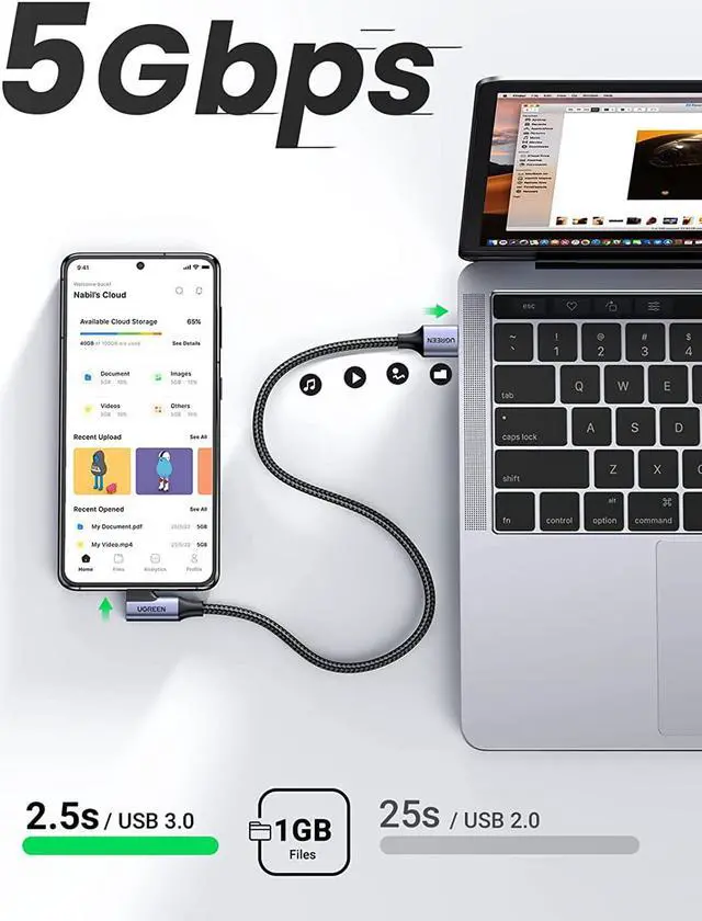 Fast Data Transfer: The USB C to USB 3.0 cable can support data transfer up to 5Gbps, connecting a hard drive to transfer 1G files in seconds, 10 times faster than USB 2.0 Type C cable 3A