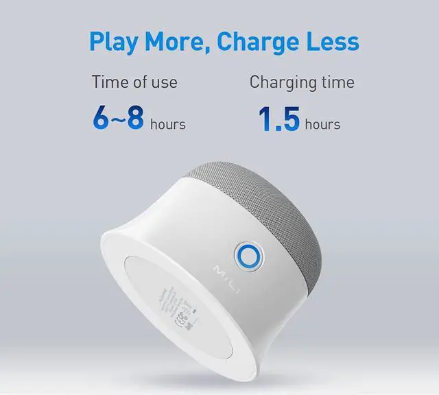 The speaker can play for up to 8 hours and takes only 1.5 hours to fully charge. ??Enhanced Bass & Volume?We know a speaker is only as good as its bass-response, so we boosted the bass and volume for maximum enjoyment. ??Supports TWS Pairing?Two Mag-SoundMates can be paired to one device at the same time for an even better stereo sound. Buy two to make them a pair of TWS speakers.