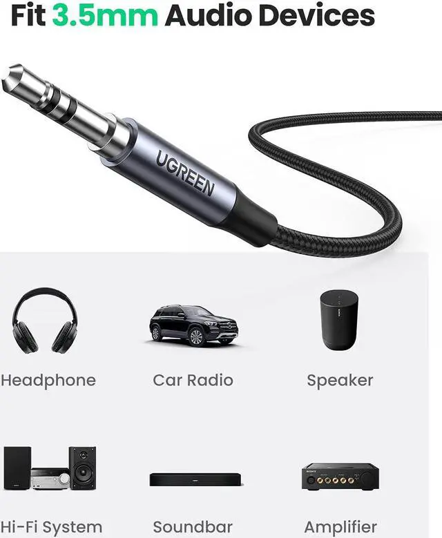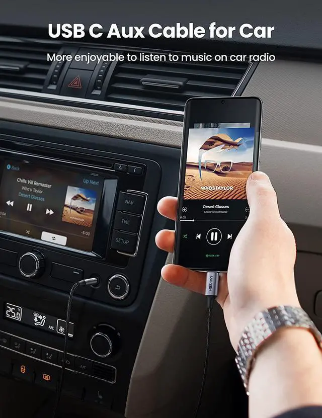 Cable for Car: UGREEN USB C to 3.5 mm Male Cable streams stereo audio directly from Type C phones/tablets/laptops to audio output devices of aux port, without audio converters, like connecting Samsung S21+ phone to car stereo system, iPad Pro 2021 to headphones, MacBook to speakers. The USB C to Aux Cable simplifies connection and enables you to enjoy Hi-Fi music on high-end devices.