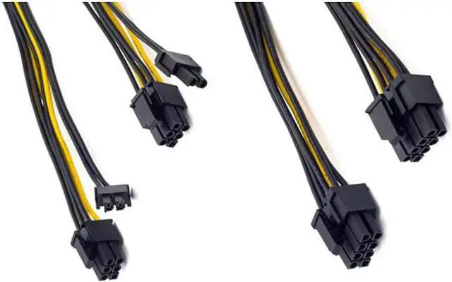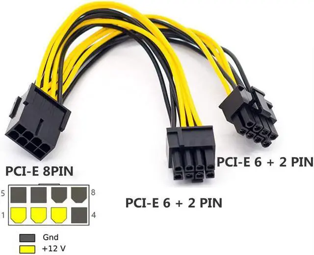 B: PCI-E 8-pin (6P + 2P) male (CPU-PCIe cable), material: plastic + metal, 18AWG wire The PCI-E adapter cable is made of high-quality plastic and oxygen-free pure copper materials, with long service life, faster and more stable data transmission, and not easy to damage. The power cord has a fixed connection latch at both ends to prevent accidental disconnection., PCI-E 8-pin to 8-pin cable is convenient to use, flexible and easy to connect, and it is a good choice to replace worn or damaged This PCI-E 8-pin splitter cable has two 8-pin connectors, which allows you to connect two graphics cards at the same time. The graphics card and power cable connection provide the option of connecting power without the need for an 8-pin PCIe connection to connect to the GPU power supply The 8-pin adapter cable allows you to use one power supply to power 2 graphics cards. The 2 x 6 + 2-pin PCIe MaleOne port is GPU 8-pin, used to connect the modular power supply. The other port is a dual PCI-E 8-pin (6P + 2P) for connecting a graphics card