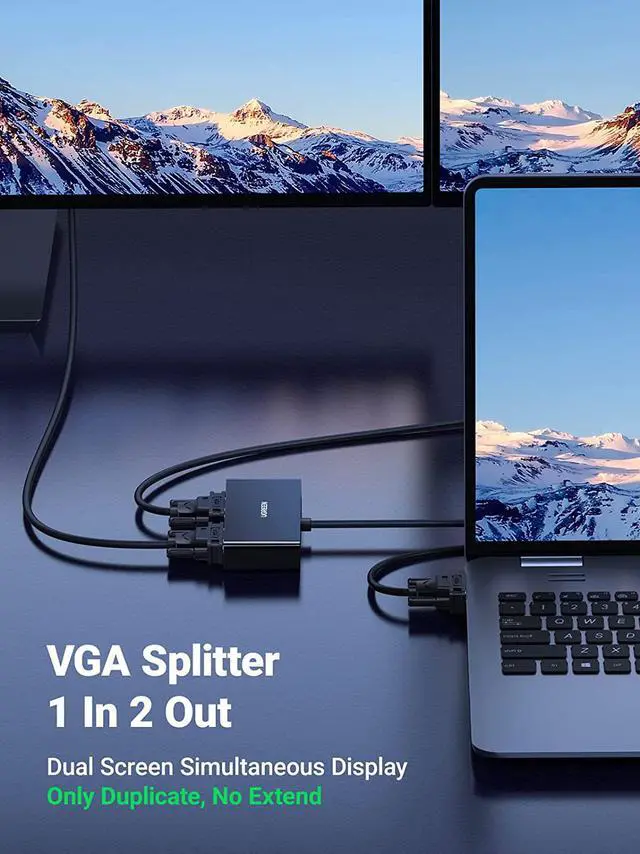ImportantNotes: The VGA splitter ONLY duplicates laptop/computer screen to displays/monitors/HDT