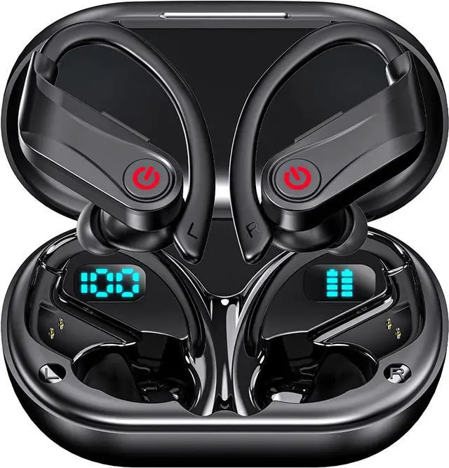 One-Step Auto Pairing: With Bluetooth 5.3 technology, the sport earphones provide stable, fast connection with your device and ensure wide compatibility, low latency and wider Bluetooth range. The wireless sport earhook earbuds are equipped with innovative receiving technology, which allows both earphones to receive signals from the phone, and the sides of the earphones can be used separately. CVC 8.0 Noise Cancellation Clear Call & Stereo Sound: The earhook headphones feature an integrated 10 mm biocomposite membrane driver for sound analysis, enhancing deep and dynamic bass, high-resolution and realistic reproduction of raw music, powerful bass, rich mid and resonant frequencies, balanced reproduction of low to mid to high frequencies. Combined with CVC 8.0 noise-canceling features, you'll experience a whole new crystal-clear world of calls. 120 Hours Play Time & LED Power Indicator & 18H Earbuds120 hours of combined playback, the wireless headphones alone provide up to 18 hours of high-quality sound output on a single charge, and the light-weight charging case provides additional 5-6 charges. Earphones with fast charging Type-C interface, Separated LED battery display design, you can precisely control the power status of the charging box and each ear buds wireless earbuds when in charging.