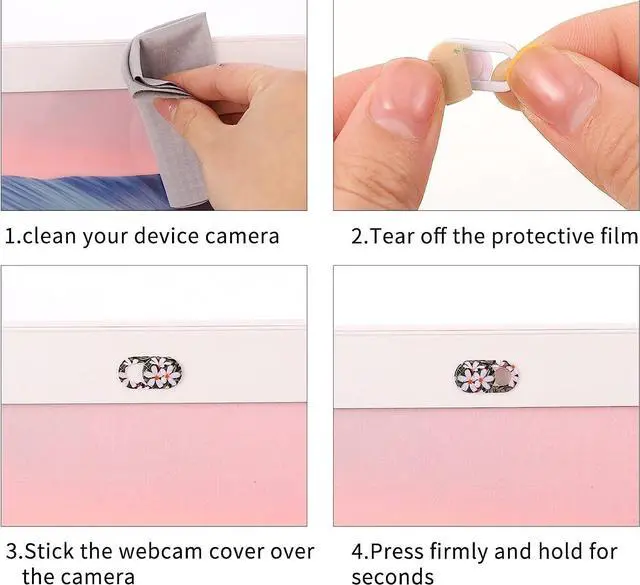 (Privacy Protection) Our Webcam Cover Slide, which are designed in beautiful flower pattern, can not only professionally protects your online privacy and prevents hacke from spying on your private life, but also protects your front-set camera from dirt and dust. Slides to open the webcam cover when you need to use your webcam. Locks in place to eure webcam cover does not slide open. (Ultra-thin Design)Flower