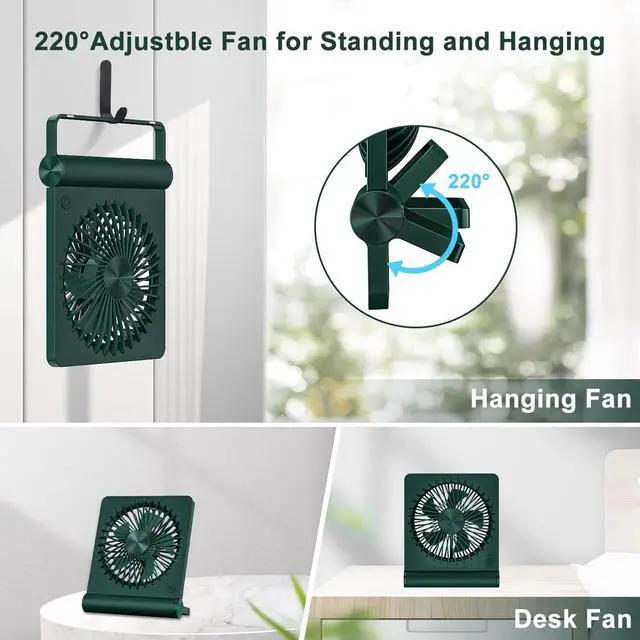 220° Rotation The desktop fan can be rotated 220° to adjust the wind angles which you need. It can be handheld, placed on the desk or hung on the tent. It's perfect to take this fan to office, camping, bedroom or other occasions. Mini and Portable FanThe fan is flat, which is only 3.7 cm, so that you can easily to put it in your bag, pocket. This portable size makes it convenient for you to take the fan to anywhere Type C Cable IncludedThe desk personal fan comes with a 120cm type c cable, which is much faster than micro b and usb 3.0.