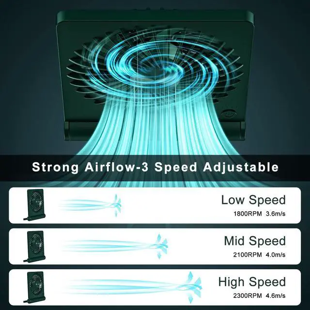Quiet but Powerful Wind- The mini fan can provide speed at least 4m/S, which can provide you with ultra-strong airflow but at the low noise (<58db), It will not affect your working, reading, sleep or do anything. It could be a essential and good companion of you in a hot summer 4.5 -20 Hours Cooling TimeUp to 20 hours cooling time in one full charge. Super long battery life allows you to enjoy it while travelling, commuting, working and any other outdoor activities. This mini handheld fan is USB rechargeable through regular usb socket, laptop, power bank or car charger.