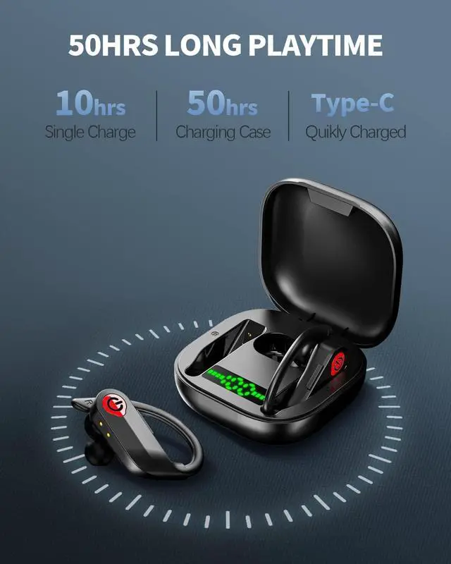 One-Step Auto Pairing: With Bluetooth 5.2 technology, the sport earphones provide stable, fast connection with your device and ensure wide compatibility, low latency and wider Bluetooth range. The wireless sport earhook earbuds are equipped with innovative receiving technology, which allows both earphones to receive signals from the phone, and the sides of the earphones can be used separately. 40 Hours Play Time & LED Power Indicator & 10H EarbudsThe power of the Bluetooth 5.1 headphones plus the earphone can last longer than two days, providing you with a stress-free travel experience. You don't need to adjust the volume on the phone, you can control the volume directly on the wireless bluetooth headphones.