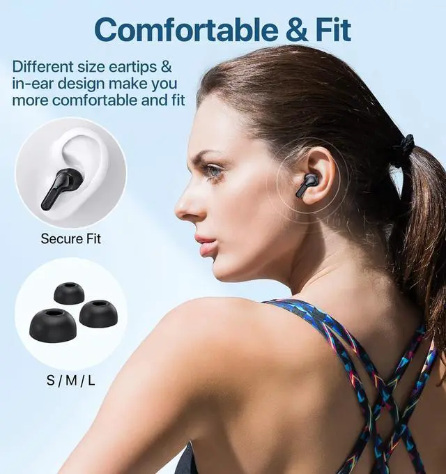 Comfortable & Lightweight: Designed with ergonomics in mind, these Bluetooth earbuds provide a comfortable and secure fit for most people. They are lightweight and compact, making them the perfect companion for your daily activities. Whether you're commuting, working out, or simply enjoying your favorite tunes, these earbuds offer convenience and portability