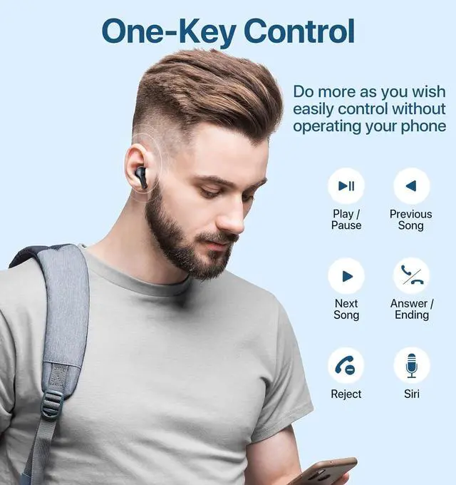 One-Step Pairing & One-key Control: Experience hassle-free connectivity with our one-step pairing feature. Simply take the Bluetooth earbuds out of the charging case, and they will automatically power on and pair. For the initial connection, a manual pairing may be required. With the smart touch control, you can effortlessly manage your music playbackswitch tracks, play or pause, answer or reject callsand adjust the volume.