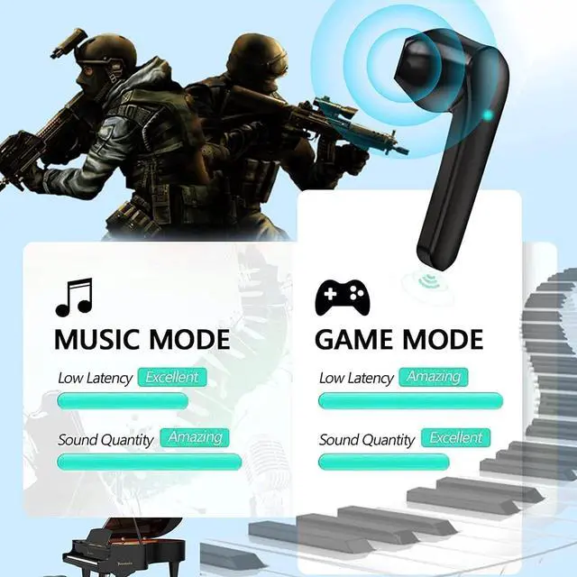 33D Stereo & Dual MicrophonesThe bluetooth earbuds have Hi-Fi sound quality, deep bass and 3D surround sound! Combined with the groundbreaking noise reduction chipset, the unique noise reduction function will allow you to enjoy music without interference. What's more, you can also choose to use one earbud separately. 4IPX7 Waterproof Performance & Ergonomic DesignIPX7 waterproof can easily resist sweat and rain, which is definitely an ideal choice for gyms and most outdoor activities. The size of the earplugs fits most people's ears, and the 45-degree inclination design is very ergonomic, so you won't feel tired even if you wear it for a long time.