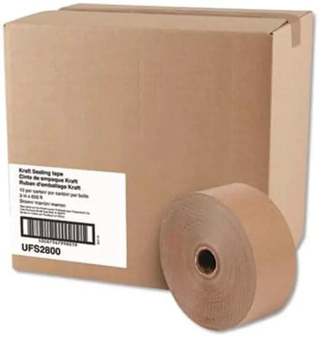 • GUMMED KRAFT SEALING TAPE, 3" CORE, 3" X 600 FT, BROWN, 10/CARTON