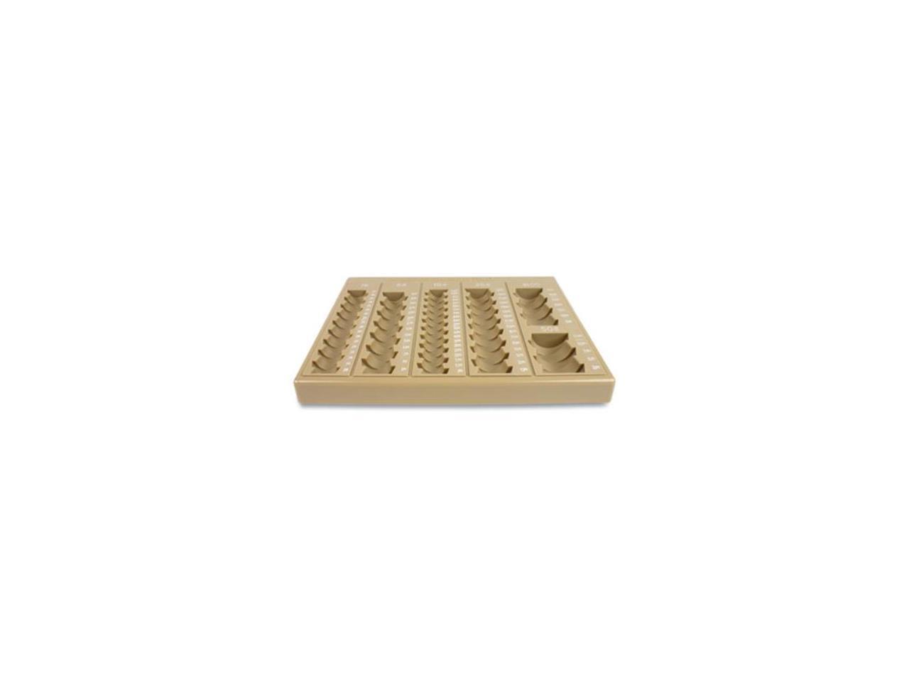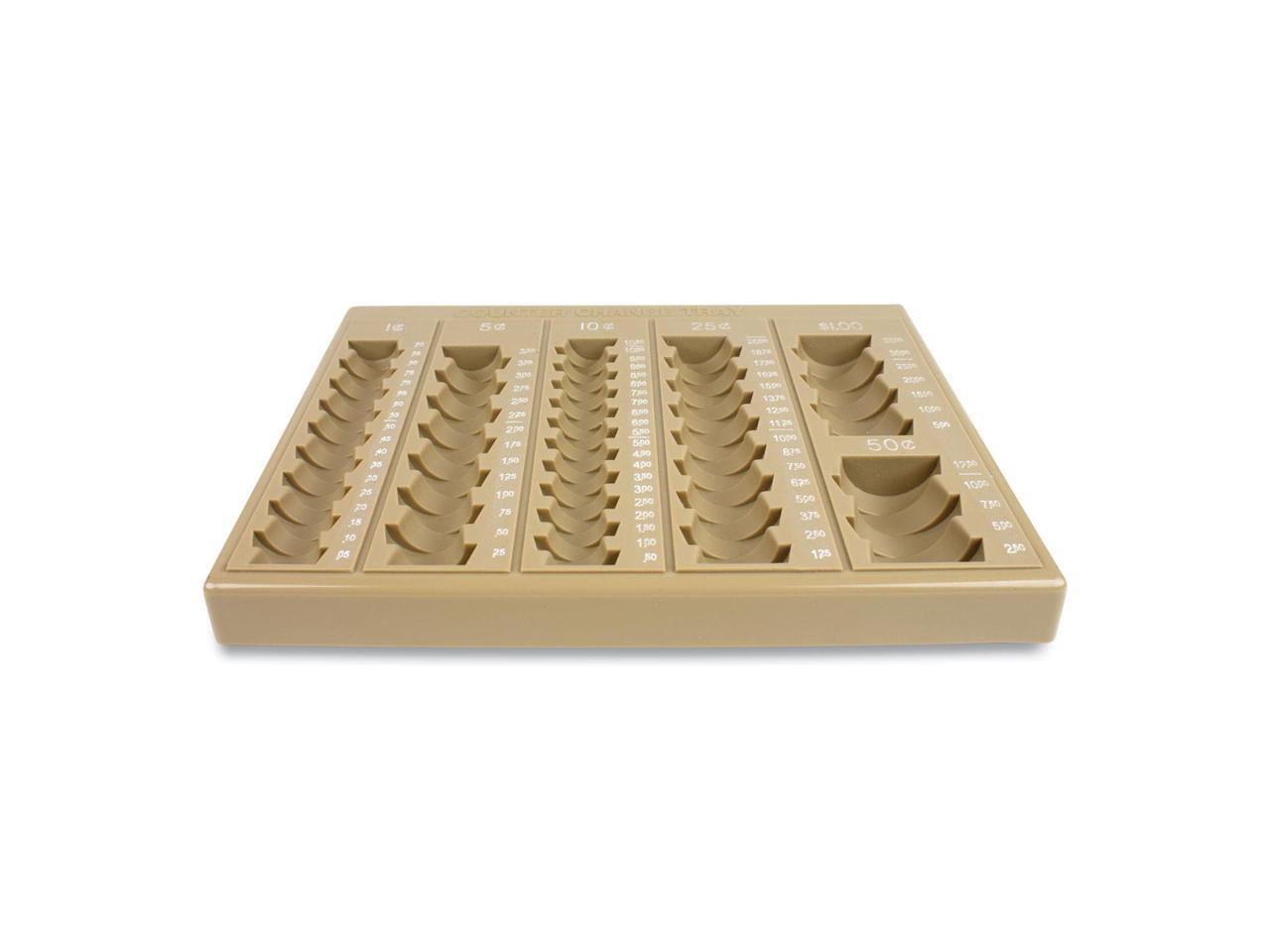 PLASTIC COIN TRAY, 6 COMPARTMENTS, 7.75 X 10 X 1.5, TAN