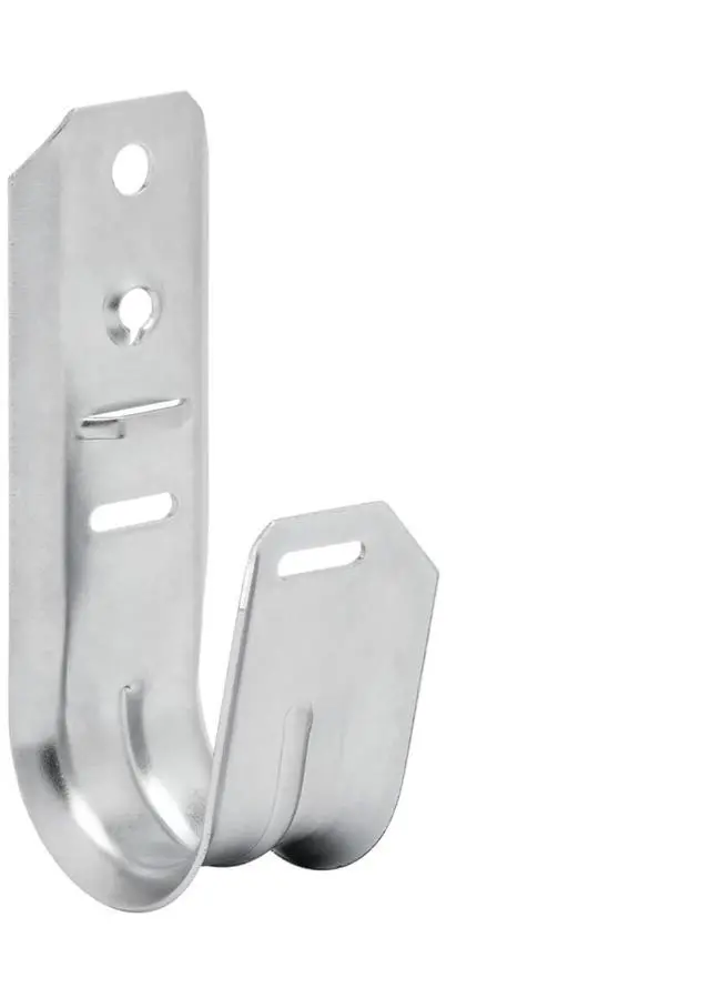 1 5 16inch J Hook Cable Support JHWM13 J Hooks are a type of cable management They provide cable wire support and are very popular in the IT Telecom Fire Safety Security industries The wall mount J hooks are designed to provide proper support for category cables fiber optic cable inner duct systems and other low voltage cabling requirements Available in four different sizes and three different types can be attached to a variety of structures These J hooks with retainer clips are designed for use with low voltage cabling such as Cat6 cable Cat5e cable Cat3 cable fiber optic cable coax cable speaker wire and much more Also great for small interdicts under 1 5 16 in diameter Packaged in 25 piece pack ideal for installers and contractors that work on small to large projects Made from durable 18 gauge steel to provide proper long term support and easy on wall installation Also these cable management hooks are galvanized with a zinc plated finish for corrosion resistance so you can rest assured these J hooks will look great year after year Less expensive and more flexible than cable trays or ladder rack runways To give you an idea of their strength they offer stress free support for up to 50 Cat5e cables 40 Cat6 cables or 25 Cat6a cables The maximum weight capacity is 60 pounds Built in anchor points allow you to use cable ties sold separately to secure cabling in place They comply with TIA 568 C TIA 569 C and ISO IEC 14763 2 requirements for structured cabling systems making them a perfect accessory for contractors IT staff and cable installers Features Most popular non continuous cable support J hookSupports cables such as Cat5e Cat6 Coax Fiber optic and moreWall mountable on a variety of structures and materialsThe pre existing hole makes installation quick and easyIncludes snap in retainer bar to securely hold cables inside the hookProvides support without causing tension on cablesMax Static Load Capacity 60LbsMaterial 18 Gauge Galvanized SteelColor SilverPackage Includes 25 x 1 5 16 Wall Mount J Hook25 x Retainer ClipMounting hardware NOT included