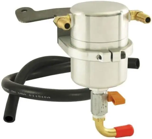 Air-Oil Separators have billet aluminum bodies with internal baffling and mesh media. Includes heavy duty brass inlet and outlet fittings, Fuel/Emission/PCV Vapor hose, stainless steel mounting bracket and billet aluminum mounting clamp for the body of the separator.