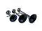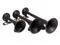 Kleinn Air Horns 730 Black Triple Train Horn with Valve will turn heads and move people - big time. It gives you an authentic train horn sound. Three tuned trumpets, 18.5-inches, 14.75-inches and 10.5-inches. Heavy-duty steel mounting brackets allow for under-body or rooftop mounting. When these horns sound, youll swear that youre standing on railroad tracks. Chrome-plated spun copper trumpets. Includes Vortex 7?12-volt heavy-duty brass body solenoid included. Trumpets can be separated from the mounting brackets for installation in vehicles that could not otherwise fit full-size train horns. When these horns sound, youll swear that youre standing on railroad tracks. Too Loud? Too Bad.