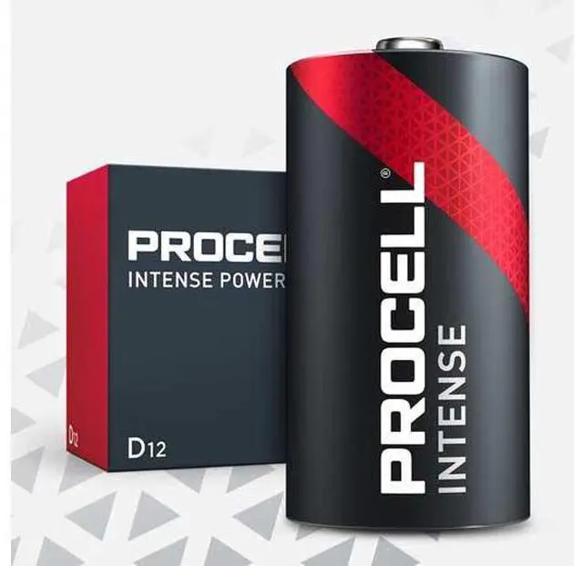 Procell Alkaline Intense Power D industrial batteries are specifically designed to last longer vs prior Procell Alkaline D batteries in high drain professional devices that require a high amount of power or peaks of power such as a paper towel dispenser
