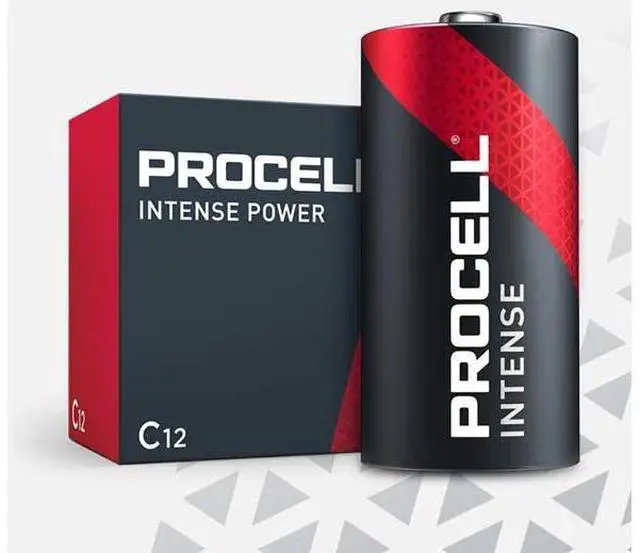 Procell Alkaline Intense Power C industrial batteries are specifically designed to last longer vs prior Procell Alkaline C batteries in high drain professional devices that require a high amount of power or peaks of power such as a soap dispenser