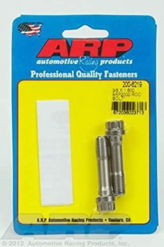 ARP Connecting Rod Bolt Kit ARP2000 3/8 in Universal P/N 200-6219 Part number: 200-6219 Fit type: Vehicle Specific Package Weight: 0.069 kilograms