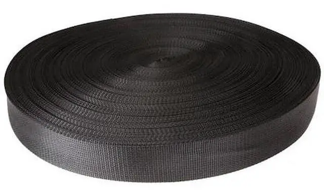 6k webbing is ideal for creating your own custom cargo nets, motorcycle tie down assemblies, etc., by adding hardware for tie downs such as cam buckles, ratchet buckles, and flat hooks. Also great for replacing straps on old equipment. Polyester has limited water absorption so it resists excessive shrinkage. Black. Length: 300. Although rare, some rolls may contain splicing due to the manufacturing process.