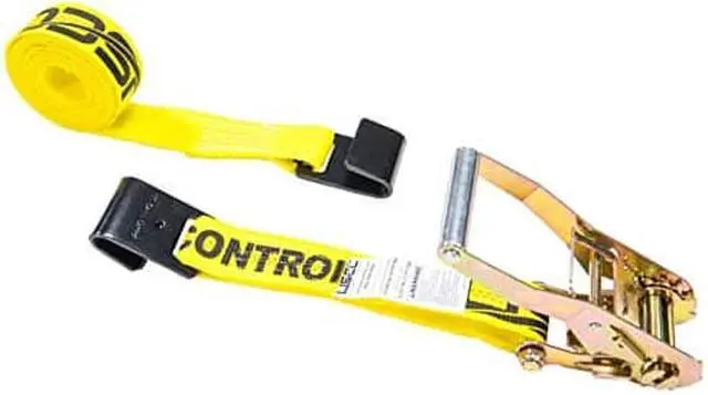 It can take on tough applications, whether you are strapping cargo to a truck, trailer, or other cargo carrier. HIGH-QUALITY MATERIALS - Tough and water-resistant polyester webbing features black flat hooks designed with a defender to reduce wear and tear on the fabric. Ratchet assembly has a wide design with a smooth handle for a comfortable grip. 2 INCH WIDE, 12 FOOT LONG - This ratchet strap is 2 inches wide and 12 feet long. You can take on small and big jobs with this 2 x 12 ratchet strap. It offers you the length you need for your tie down jobs on trucks, trailers, and more.
