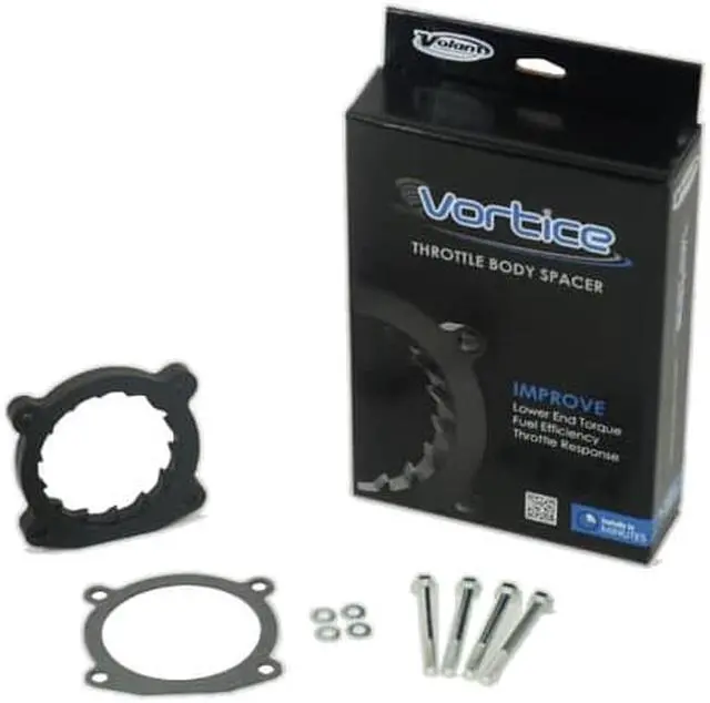 Vortice throttle-body spacers are designed to provide additional performance with your factory or Volants Cool Air Intake system. Manufactured from glass-filled Nylon composite, the Vortice spacers are incredibly strong, yet lightweight and install behind your vehicles throttle body to promote quicker throttle response and in most applications, provide a slight improvement in fuel efficiency.