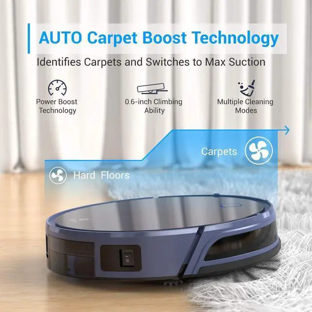 2. AUTO Carpet Boost Technology - Lefant robot vacuum cleaner for carpet can automatically turn to max model suction power on carpet to provide deeper cleaning. The obstacle crossing height reaches 0.6 in, which is especially suitable for cleaning All kinds of carpets.