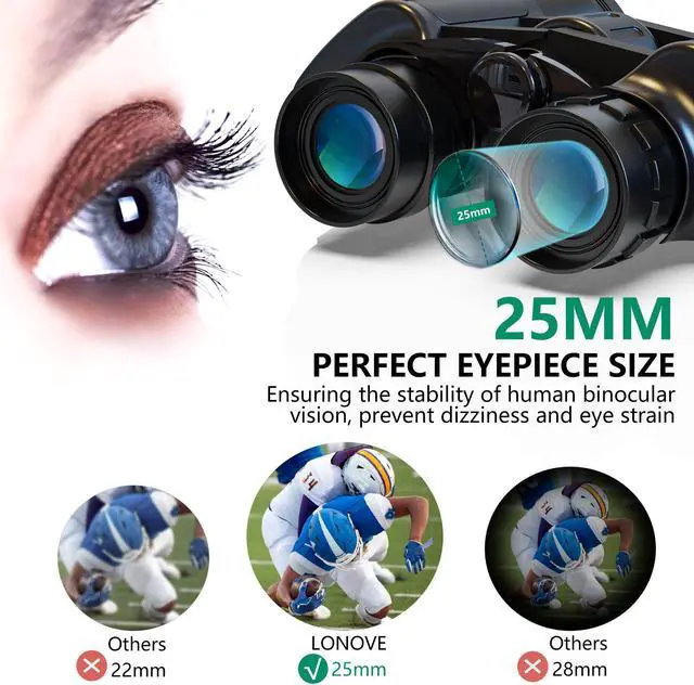 1.Professional/Powerful/Compact Binoculars : Designed with 20X high power magnification,50mm objective lens, provides wider field of view at 1000 yards large field of view good for fast moving subject, are ideal for bird watching, concerts, football game,climbing, hiking, driving, watching wildlife an