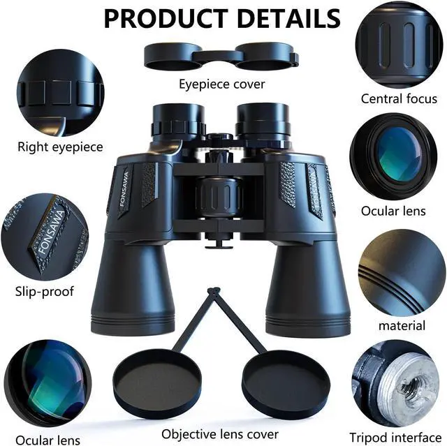 2.Weak Light Vision with Quality Optics : FONSAWA HD binoculars watching comes with BAK-4 Prism and FMC film lens, Design of Aspherical lenses and multi-layer coating guarantee excellent light transmission,and which minimizes the loss of light due to reflection, It has the effect of low-light night vi