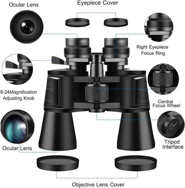 *Easy To Operation*:Focus by adjusting the right eye cup and center wheel. Widely used for adults or children bird watching,outdoor sightseeing,climbing traveling,sport events,concerts star gazing,etc.(Tips:Built with a tripod interface,the tripod is not included).