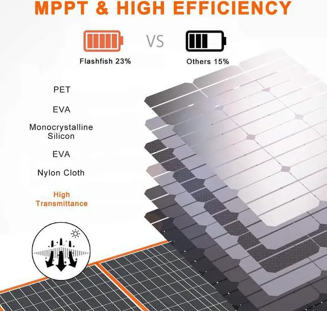 high conversion efficiency - constructed of high-efficiency solar arrays, convert up to 21.5 - 23.5 % of solar power into free energy.