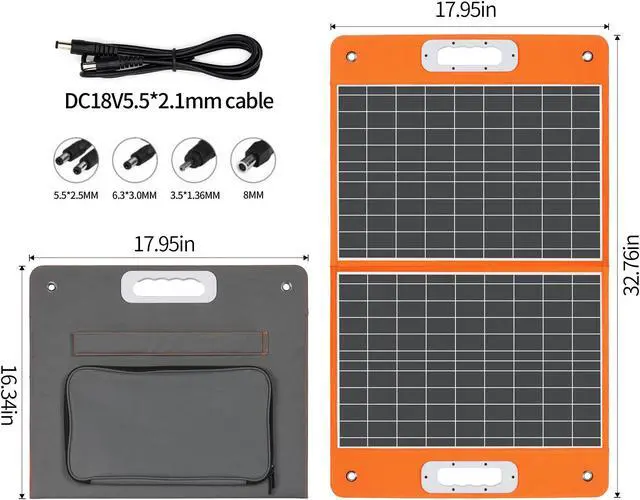 fold up as a briefcase when folded, the solar charger looks like a briefcase ( 17.95 x 16.3 inches) easy for transport and will weigh just about 3.66 pound; when unfolded ( 17.95 x 32.76 inches),, it can hang on your rv, tent, or just spread out on the beach to gives you instant charge from sunlight.