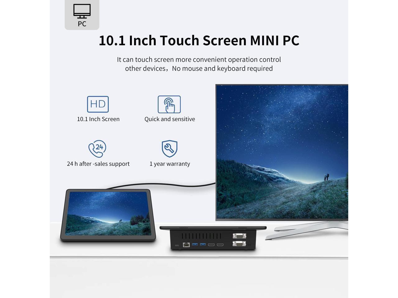 10.1 inch HD touch screenHIGOLE PC MINI computer with a compact size and a 10.1-inch HD touch screen.