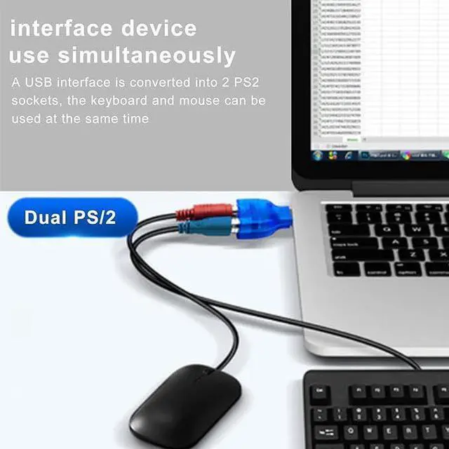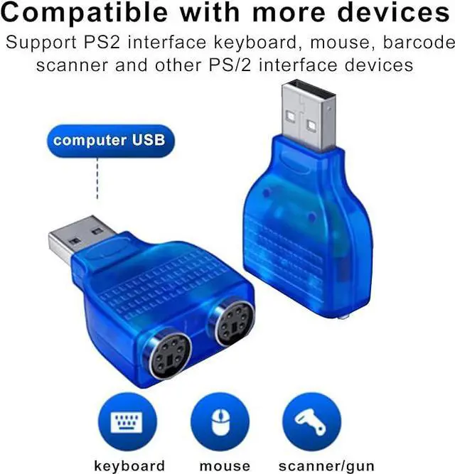 • PS2 to USB, USB Female to PS Male 2 Mouse Keyboard Converter Adapter, Dual PS2 to USB Computer Cable Adapter Free Drive