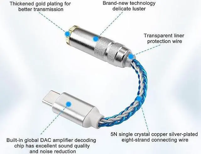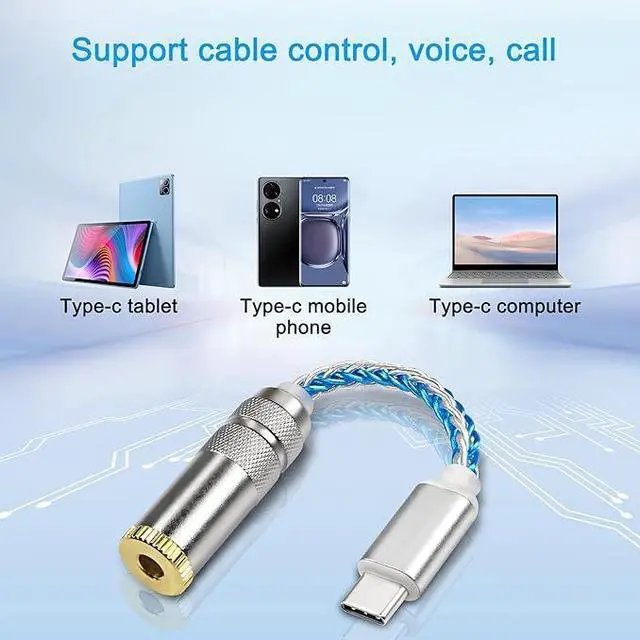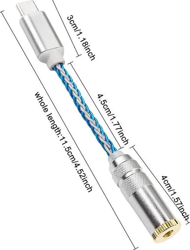 USB Type C to 4.4mm Balanced DAC Audio Adapter USB C Male to 4.4mm Female HiFi Headphone Jack Amp PCM 32bit/384kHz with 5N Single Crystal Silver Aux Cable for Phone Latop and Type C Devices