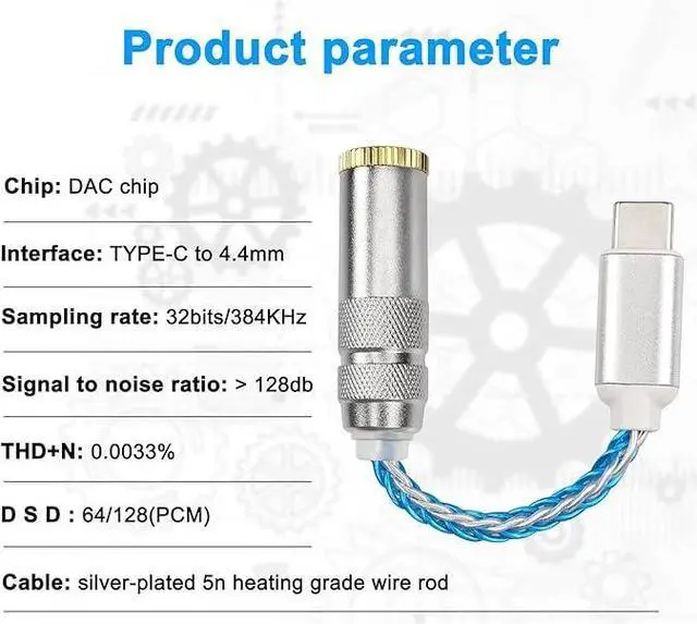 USB Type C to 4.4 mm Balanced DAC Audio Adapter USB C Male to 4.4 mm Female HiFi Headphone Jack Amp PCM 32bit/384kHz with 5N Single Crystal Silver Aux Cable for Phone Latop and Type C Devices