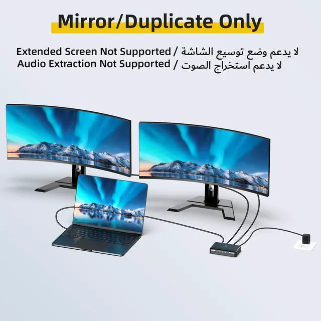 What's in The Box: Includes 1x UHD-1280 Splitter, 1x DC 5V USB-C Power Adapter (US Plug), and 1x User Manual.